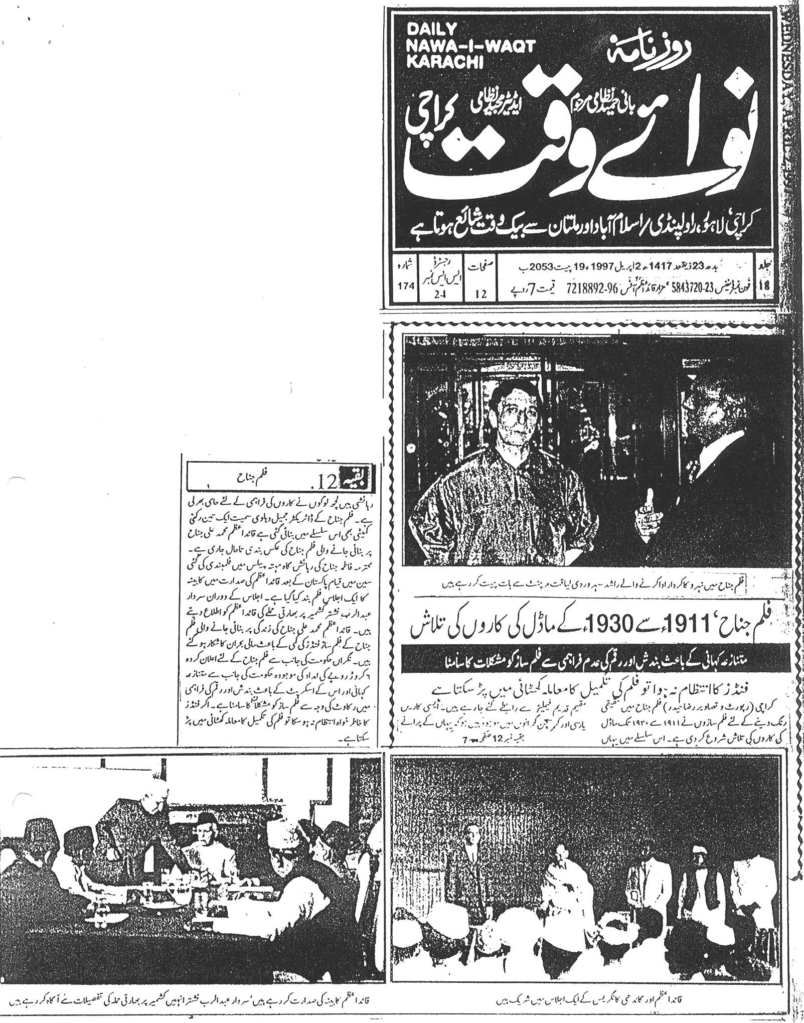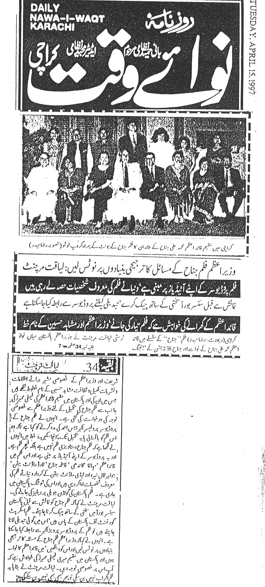 This is the first time that the world in general and the people of Pakistan in particular, will have the opportunity to see this portrait of the founder of this nation, in which the Quaid-e-Azam is shown not merely as a great political figure but as an intensely human being. He has been so misrepresented and maligned over the years in print and on the screen that it is high time that this totally false impression was rectified and that is what we are doing in this film, to put the record straight.