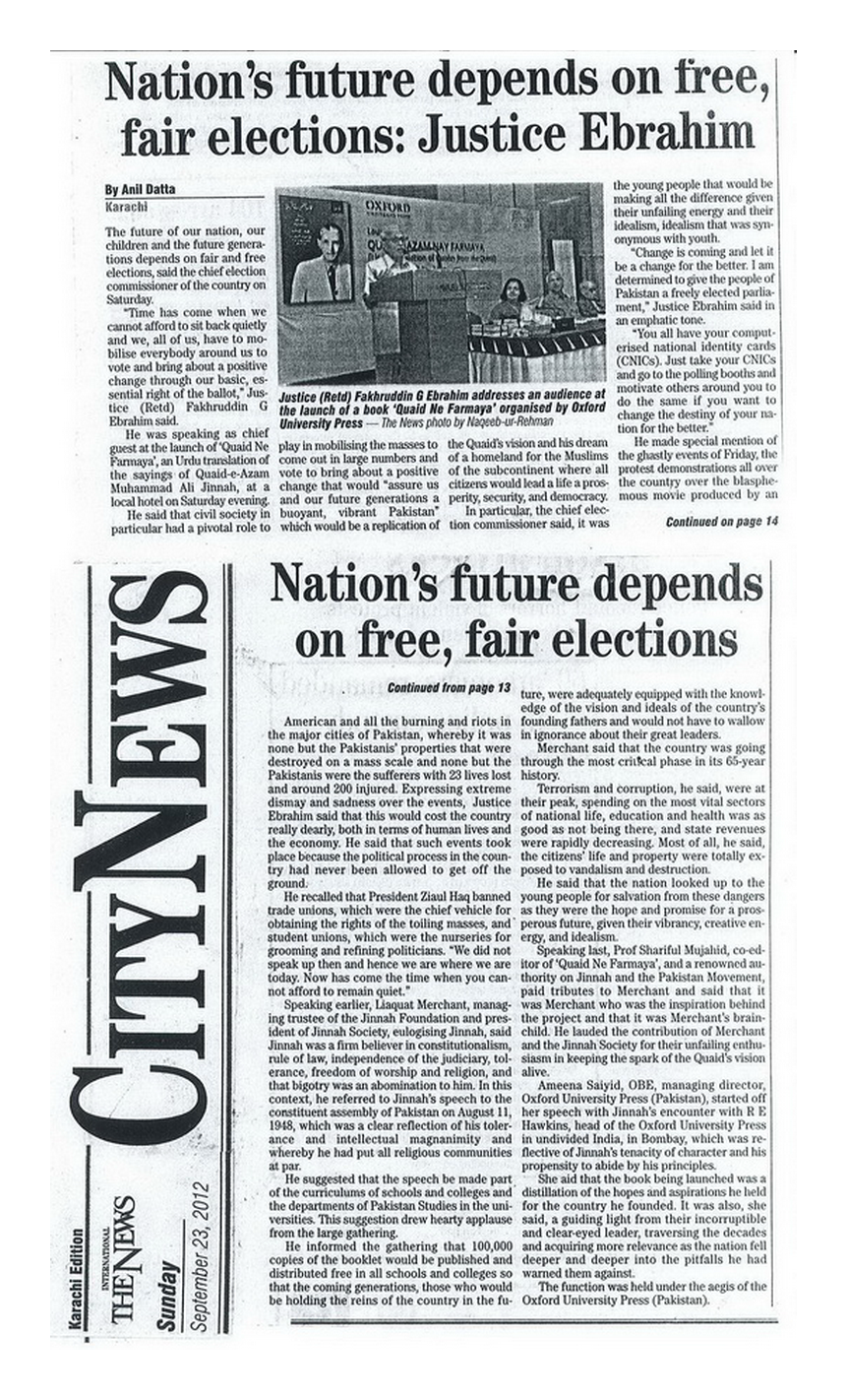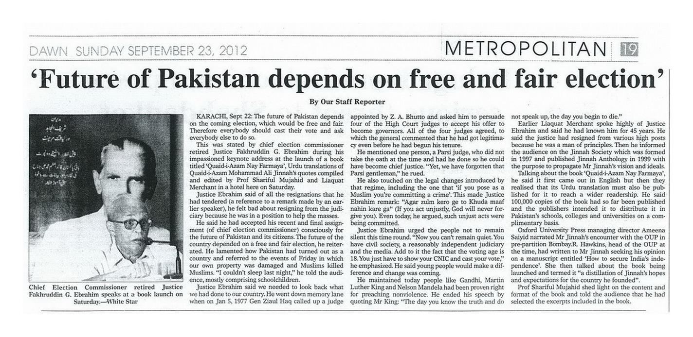 An acknowledgement of gratitude and appreciation for the sponsorship/ co-sponsorship of the book was prepared and distributed at the event. A scanned copy of the acknowledgement and the two news reports which appeared in the Dawn and The News are enclosed herewith for your information and record. We now have 100,000 copies of the book for distribution to students of schools, colleges and universities in Pakistan.