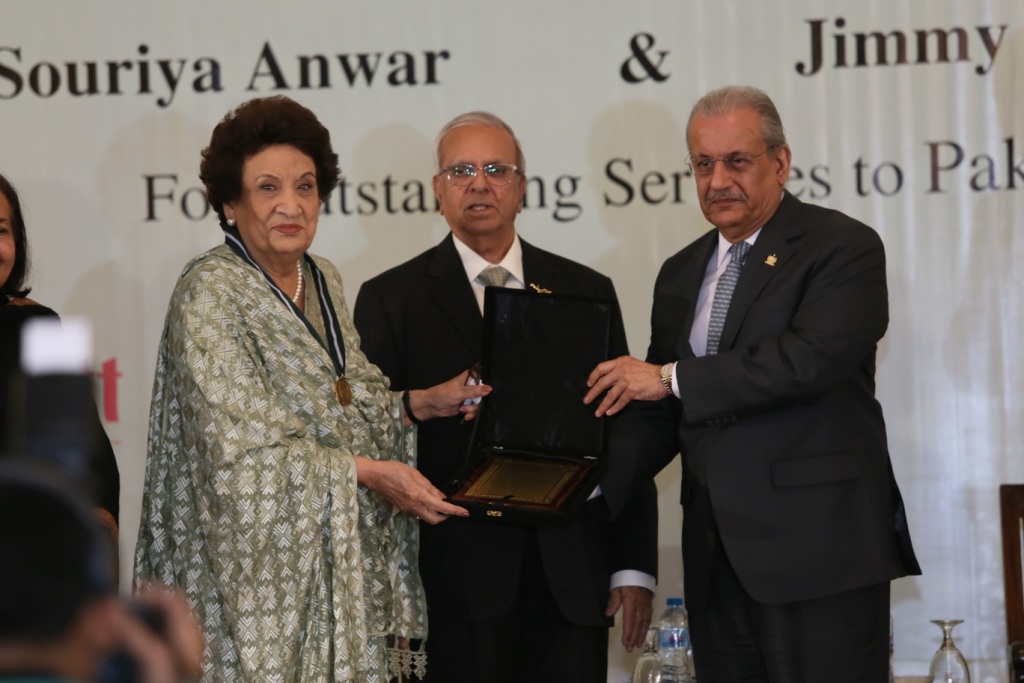 The recipients of the 13th and 14th Jinnah Awards selected by Members of the Jinnah Society were Mrs. Souriya Anwar, Founder President, SOS Children's Villages Pakistan and Mr. Jimmy Engineer, the well known artist and social worker - to whom the awards were conferred for their outstanding and dedicated services to the people of Pakistan in their respective areas of service.